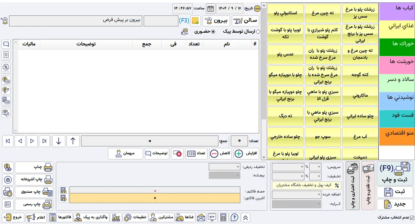 نرم افزار حسابداری رستورانی زعفران (برنامه رستورانی) — دمو رایگان و خرید