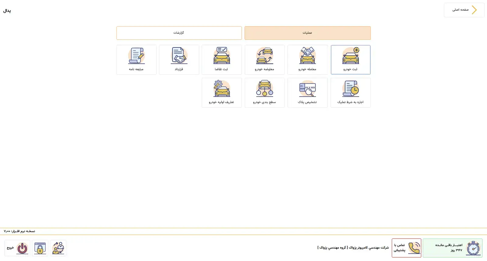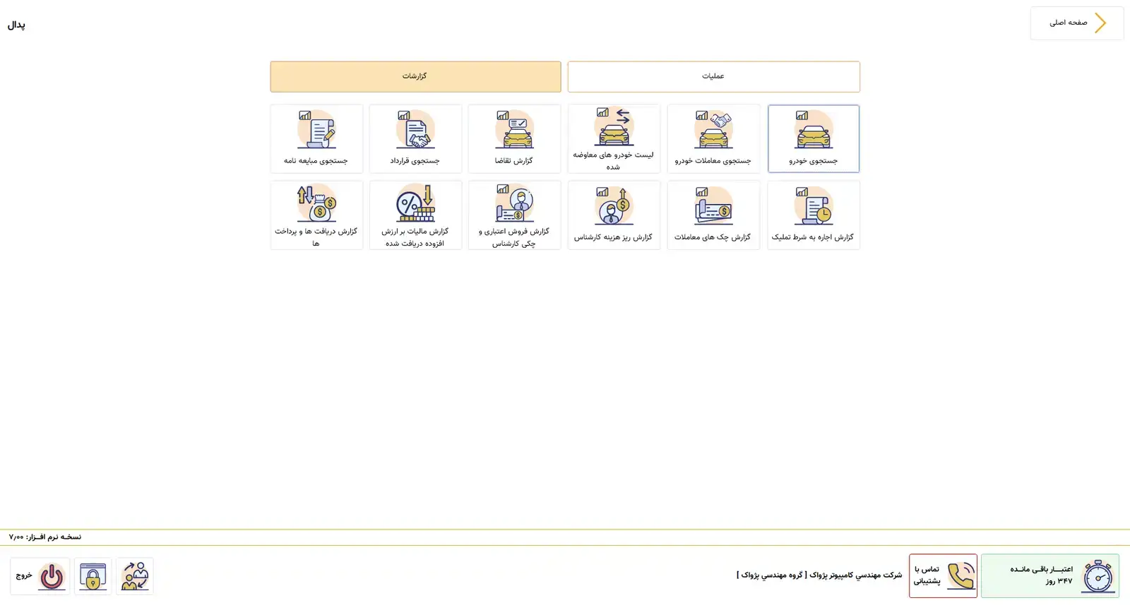 پدال نرمافزار تخصصی مدیریت نمایشگاههای خودرو است که ثبت خرید و فروش، معاوضه، فروش اقساطی، محاسبه کمیسیون، صدور قولنامه و آرشیو اسناد را در یک پنل یکپارچه انجام میدهد؛ همراه با گزارشهای مالی، پیگیری مشتری و ابزارهای لازم برای مدیریت روزانه نمایشگاه.